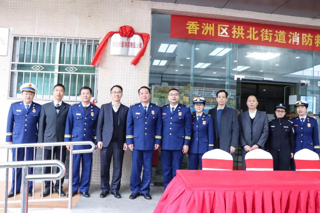 消防車廠家【m.thyi.cn】新聞訊:廣東省珠海市香洲區(qū)拱北街道消防救援分局在街道第二辦公樓揭牌亮相,標(biāo)志著廣東省首個消防救援分局正式建成。省消防救援總隊劉勝高級工程師、市消防救援支隊李汕支隊長、香洲區(qū)劉齊英區(qū)長和市、區(qū)兩級住建、應(yīng)急、公安、司法等部門領(lǐng)導(dǎo)以及消防指戰(zhàn)員代表共100人參加儀式。